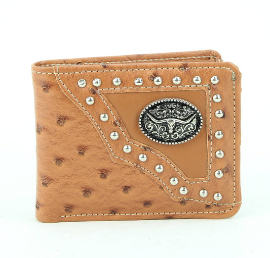 American Bison Vegan Leather Concho Bifold w Steer Medallion