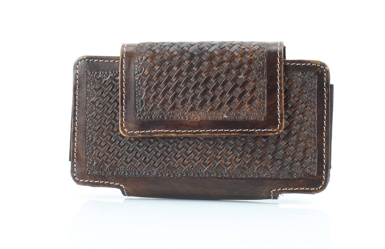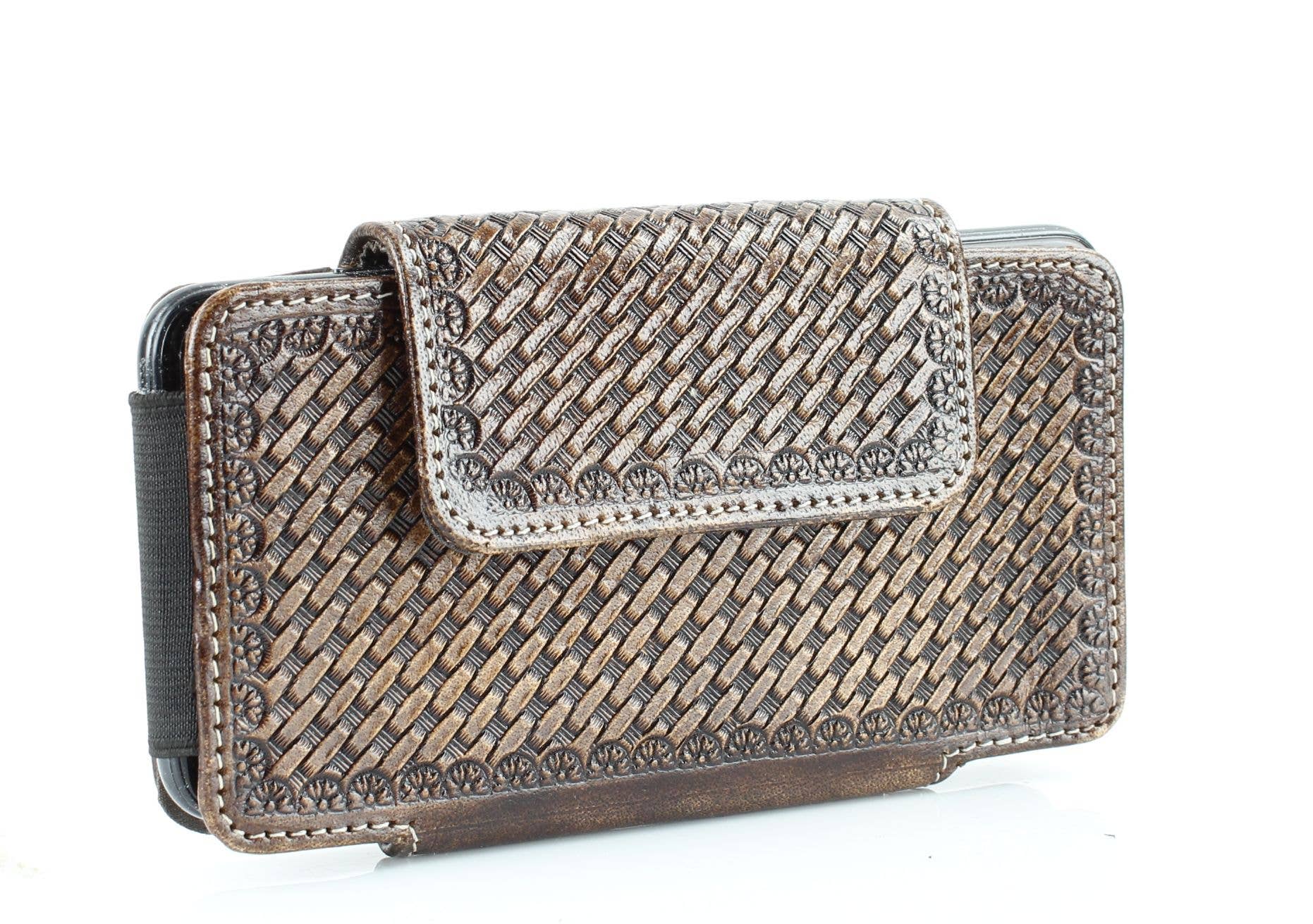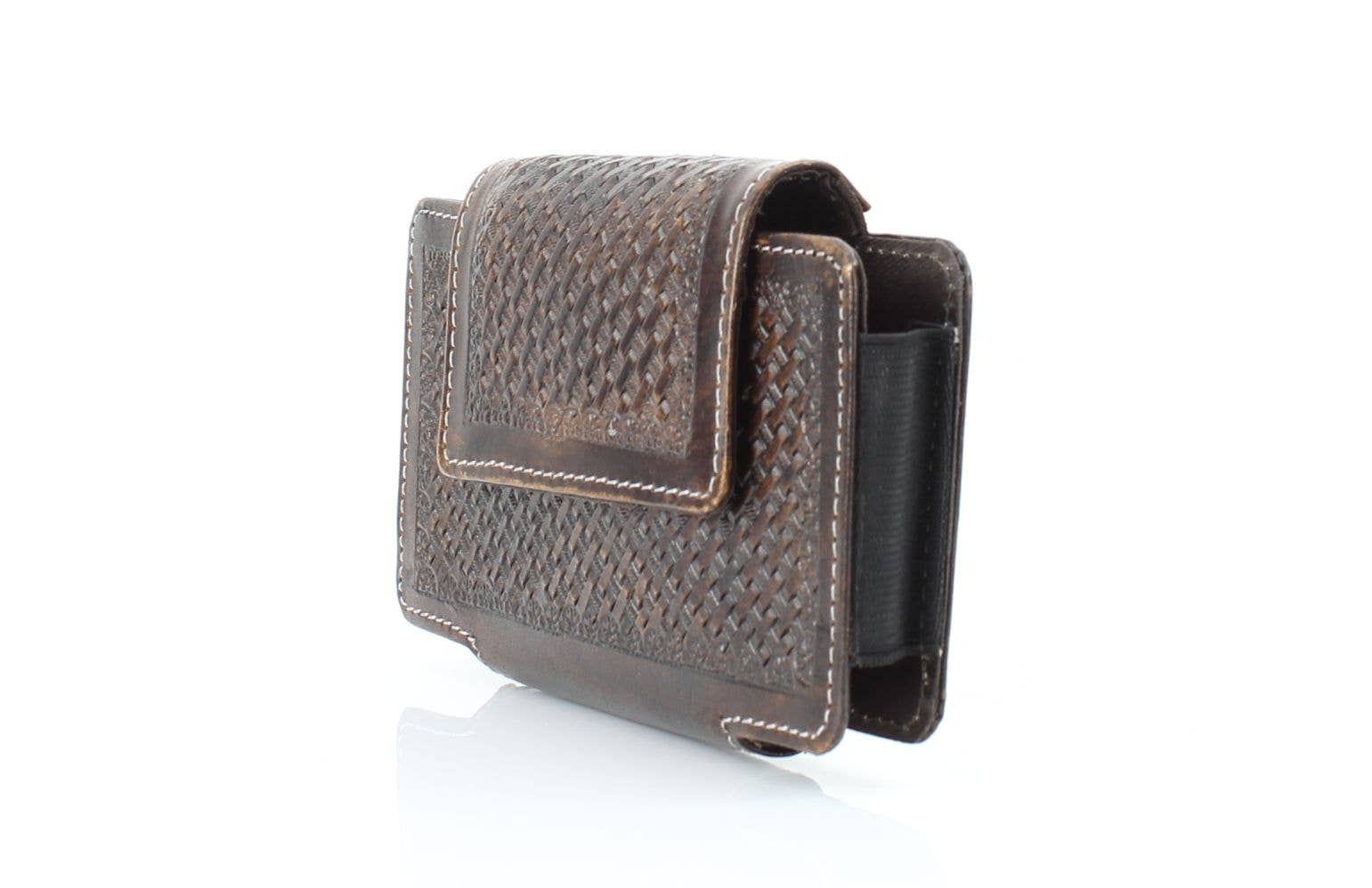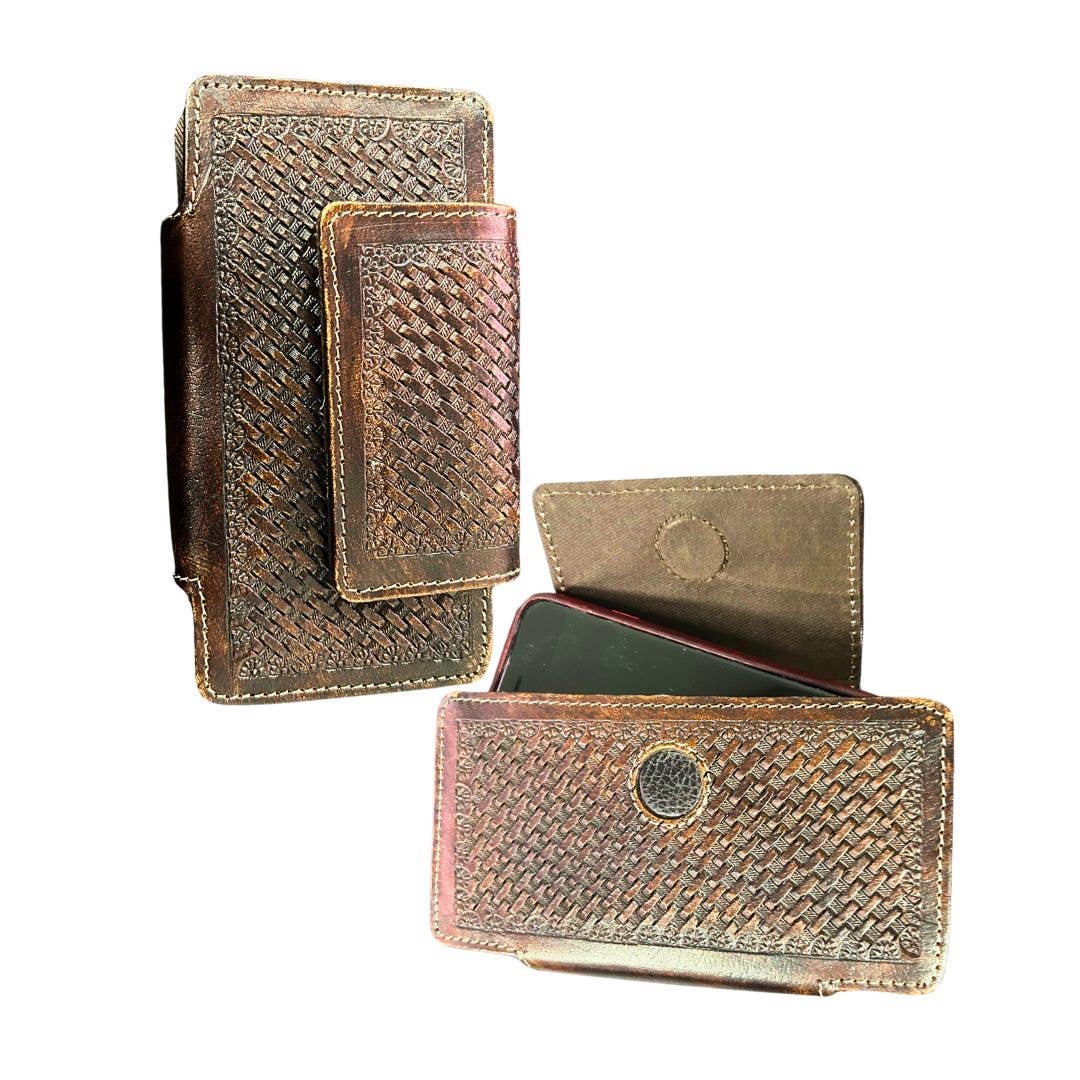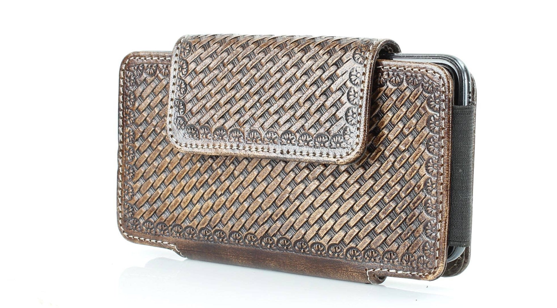 The Basket Weave Horizontal Phone Case for Belt combines the best of Western style and modern practicality. With its tooled basket weave design, durable bison leather, and convenient horizontal layout, this phone case offers superior protection and easy access to your phone. Whether you're out in the field, on the trail, or navigating the city streets, this phone case is the perfect blend of functionality and fashion. Invest in a phone case that reflects your personal style while offering the ultimate in protection and convenience