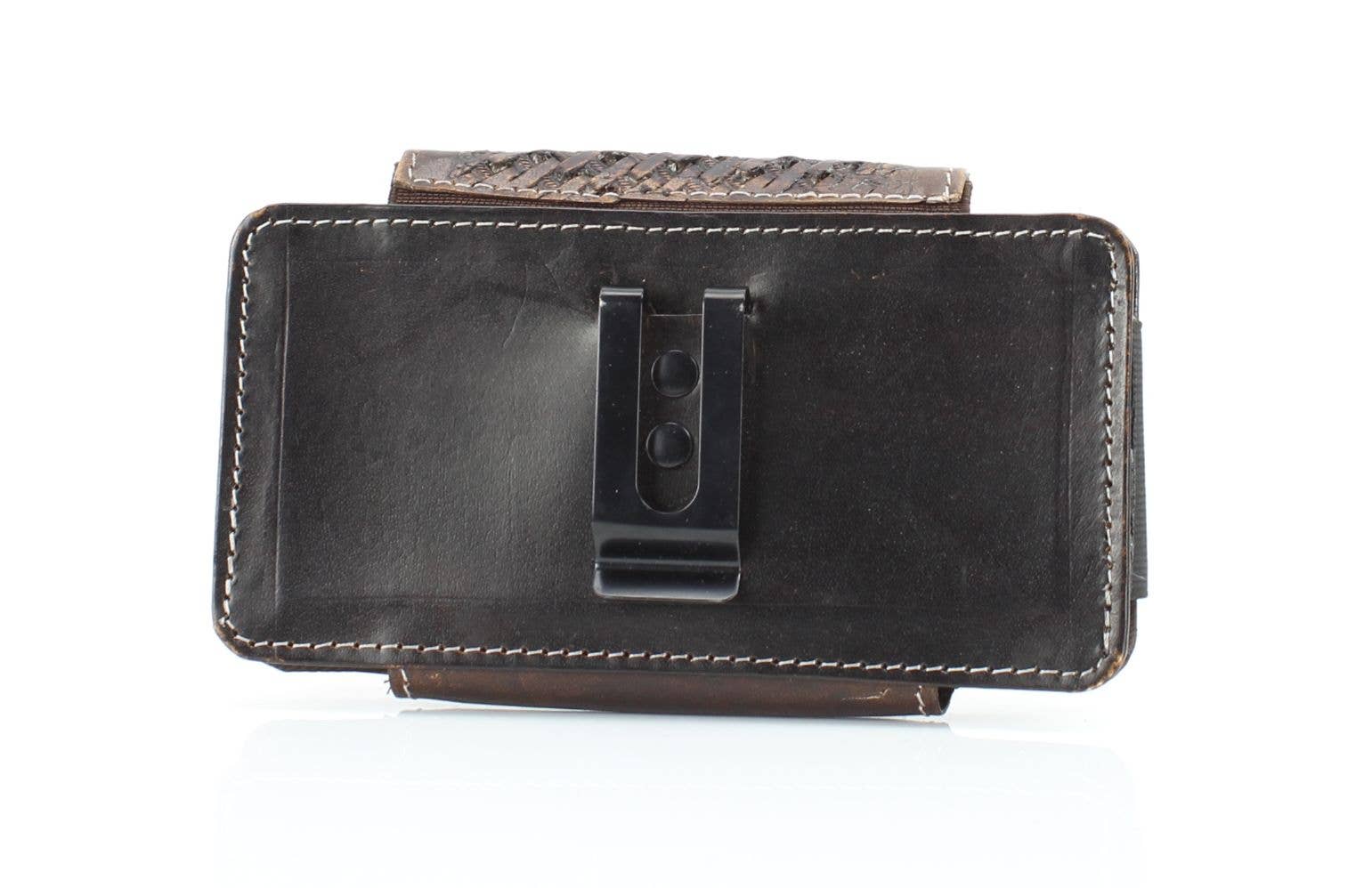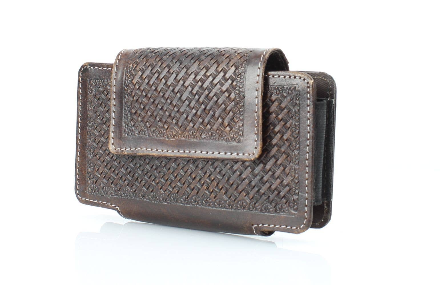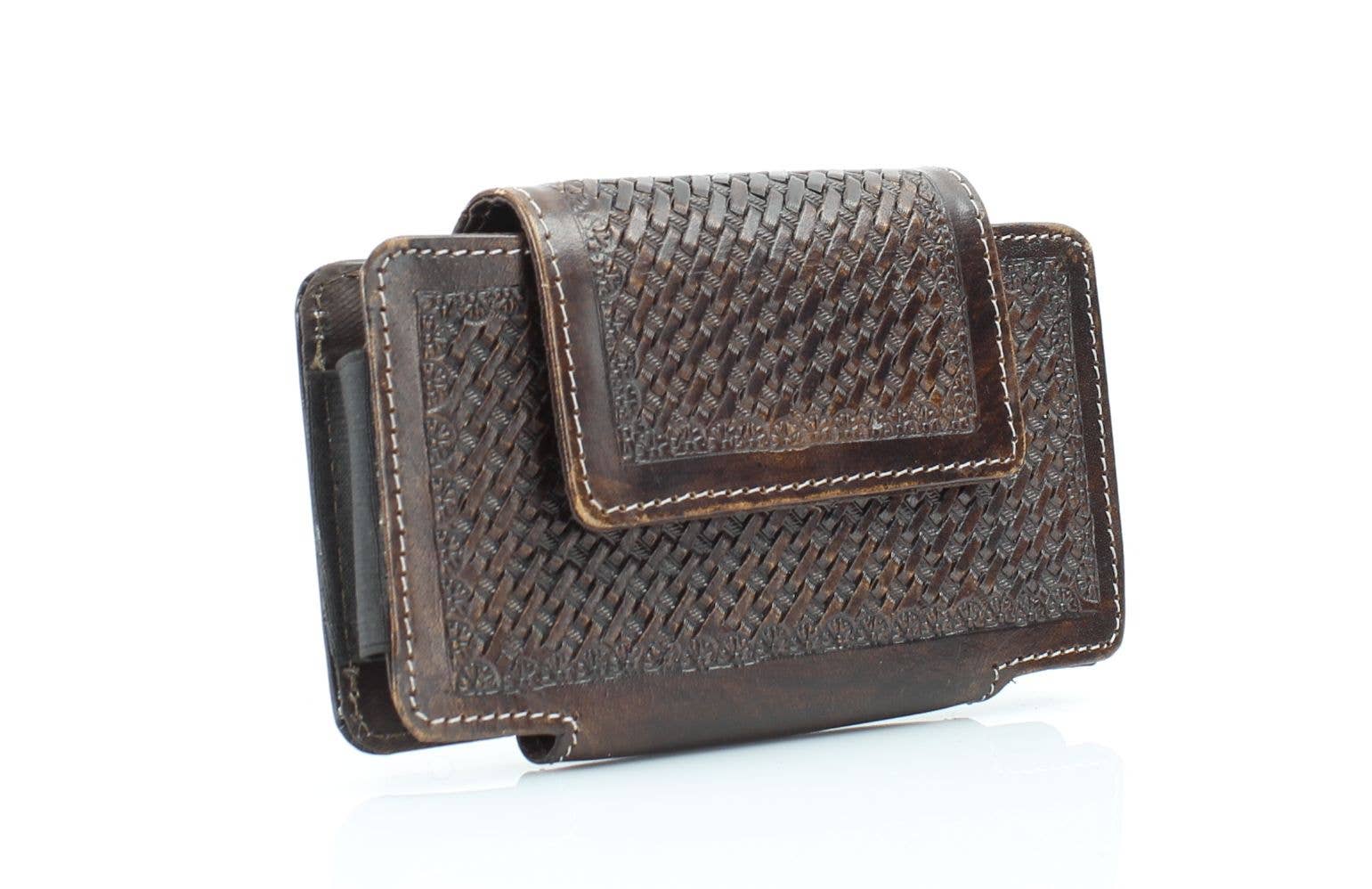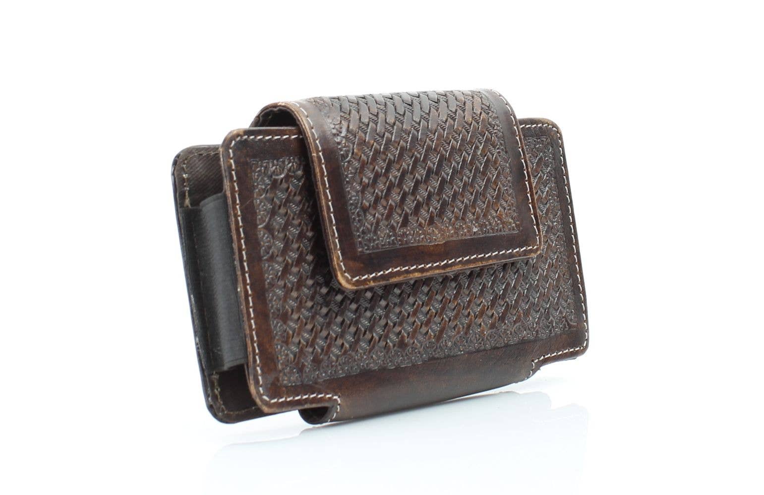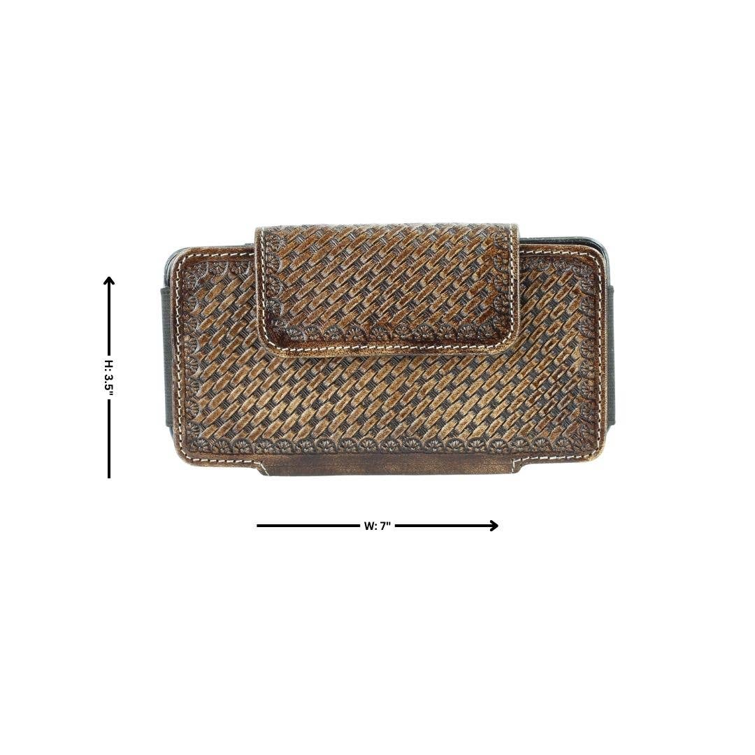 The Basket Weave Horizontal Phone Case for Belt combines the best of Western style and modern practicality. With its tooled basket weave design, durable bison leather, and convenient horizontal layout, this phone case offers superior protection and easy access to your phone. Whether you're out in the field, on the trail, or navigating the city streets, this phone case is the perfect blend of functionality and fashion. Invest in a phone case that reflects your personal style while offering the ultimate in protection and convenience