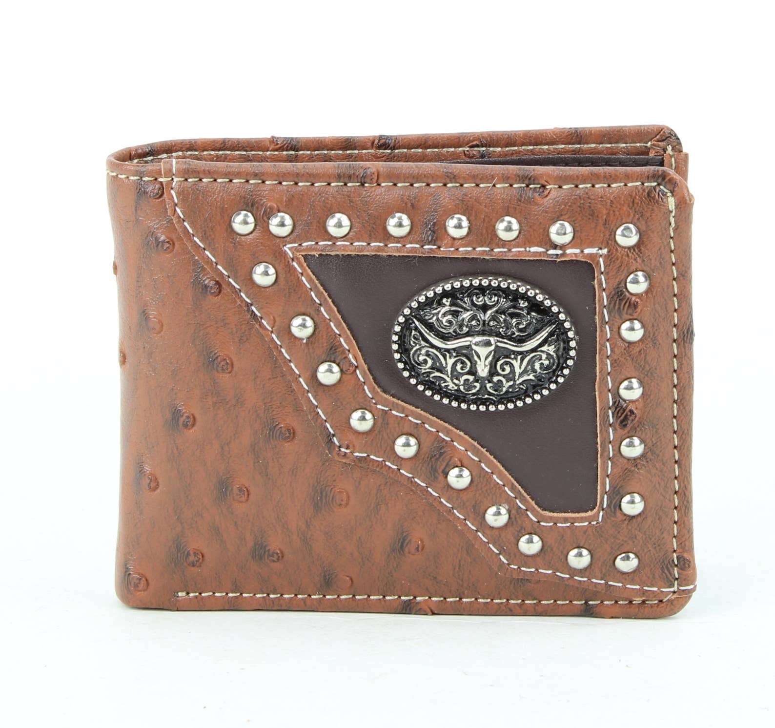 American Bison Vegan Leather Concho Bifold w Steer Medallion