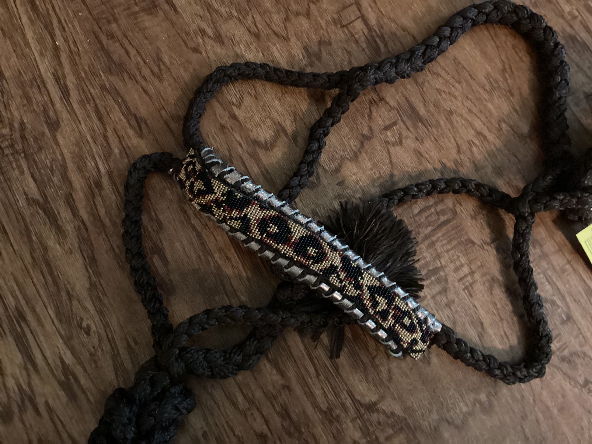 Brown Mule Tape Halter with leopard beaded noseband